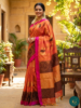 A lively blend of tradition and elegance, this Orange Handloom Saree with Pink Border and thread work brings a cheerful charm to your look.